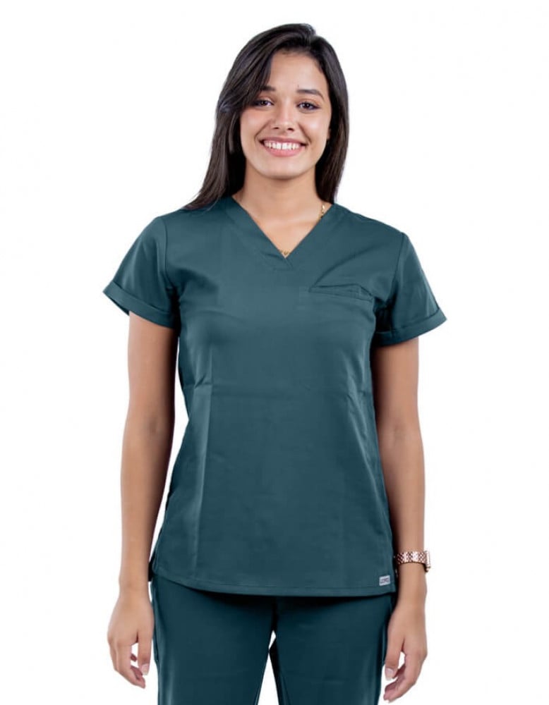 بلوزة ليو ميد الموديل الجديد والاحدث ياتي بتصميم انيق وبسيط بجيب مخفي للصدر بالاضافة لقصة الكم المطوية
